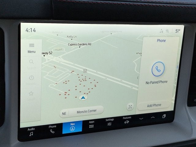 - Connected Navigation -inc: 1-year subscription, pinch-to-zoom capability, live traffic, predictive destinations and route guidance and One Box search, Navigation services require SYNC4 and FordPass Connect, complimentary connect service and the FordPass app (see FordPass terms for details), Customer receives a complimentary 1-year subscription of navigation services when an eligible vehicle is added to a member's FordPass account, Trial period begins on the new vehicle warranty start date, At the end of the complimentary period, navigation service will terminate, Connected service and features depend on compatible AT&T network availability, Evolving technology/cellular networks/vehicle capability may limit functionality and prevent operation of connected features, FordPass App, compatible w/select smartphone platforms, is available via a download, Message and data rates may apply